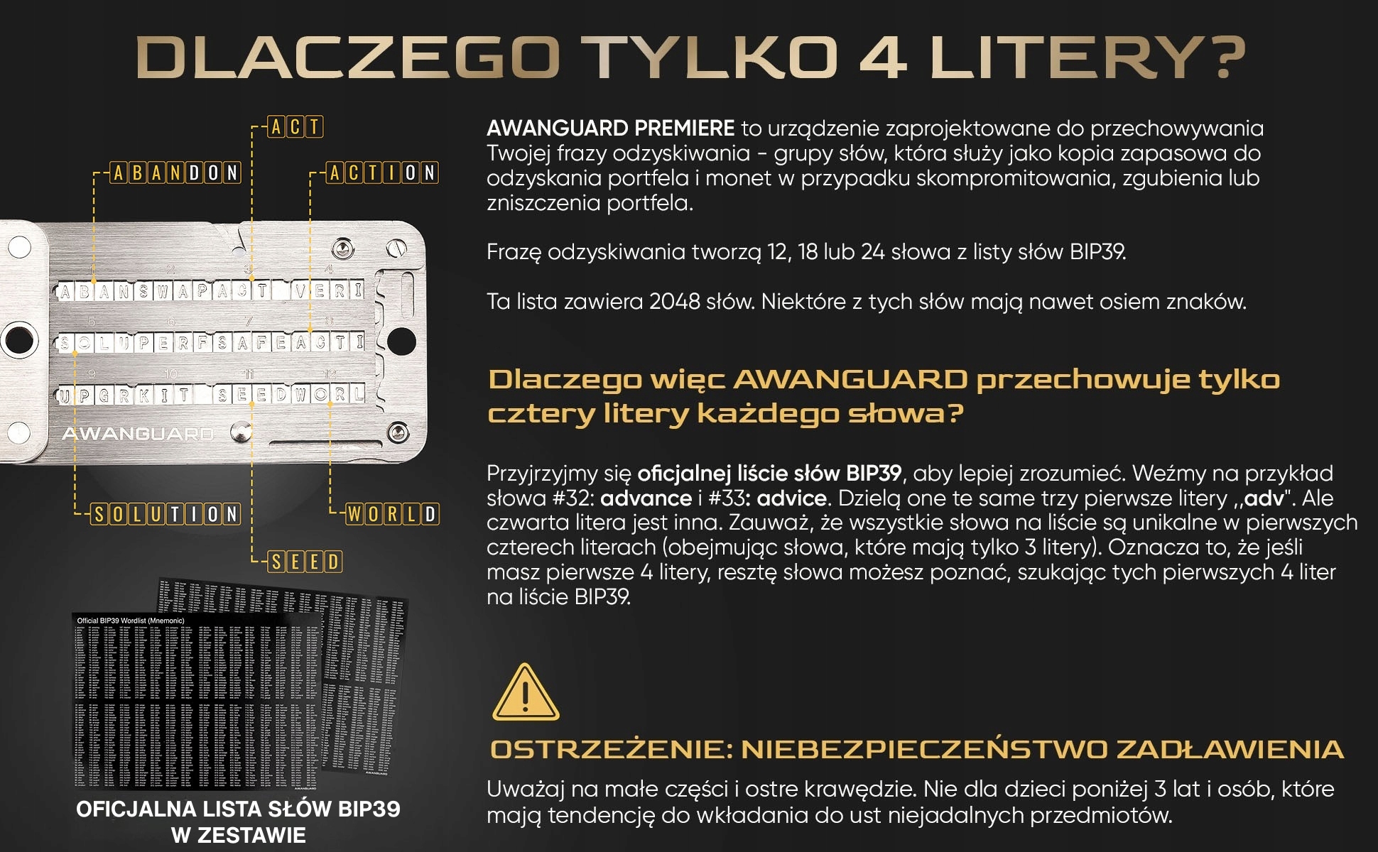 AWANGUARD Premiere Basic - сталеве резервне копіювання, криптовалютний гаманець 24 x SEED