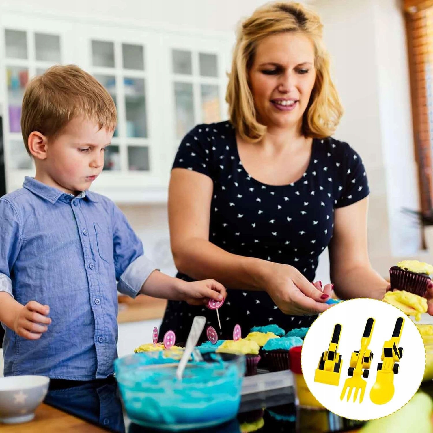 AWAVM 3 дитячі столові прибори Бульдозер Екскаватор-навантажувач