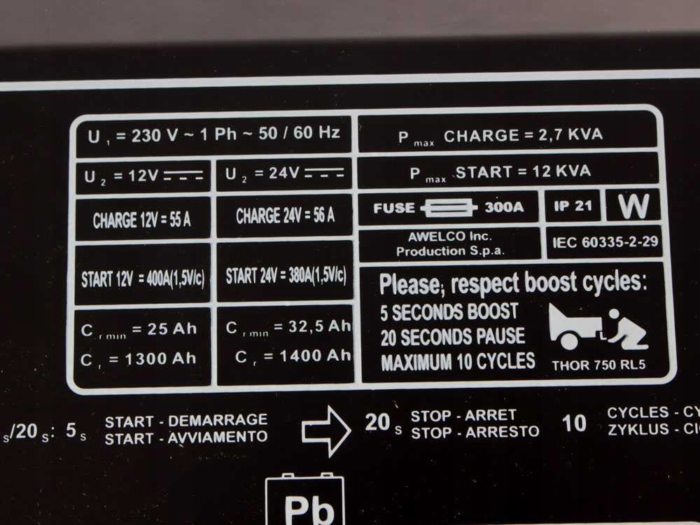 Awelco THOR 750 - зарядний пристрій, пусковий зарядний пристрій, бустер - на візку - однофазний - акумулятор 24-12 В