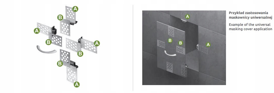 Універсальна кришка MU1 призначена для плитки, розмір або специфіка якої виключає використання кришки, призначеної для типових розмірів плитки. Універсальний чохол являє собою набір тримачів і магнітів, який можна використовувати для плитки будь-якого виду і розміру. Універсальна маска дозволяє заповнювати шви, роблячи оглядовий отвір абсолютно непомітним.