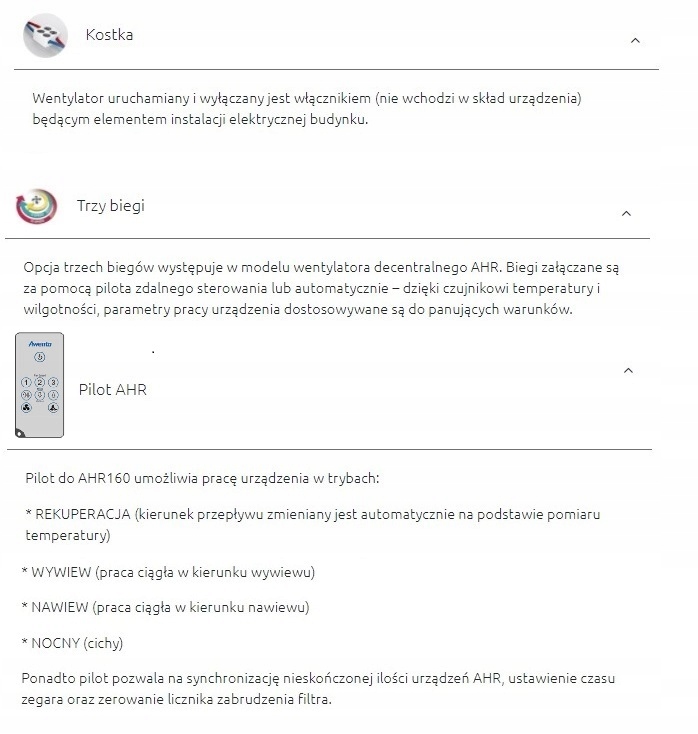 awenta ahre160 wifi decentral вентилятор. Завдяки використанню керамічного накопичувального обмінника, AHR зупиняється і накопичує теплову енергію, а потім нагріває більш кулер подачі повітря ззовні. Різниця між серією AHR та HRV полягає в рішеннях, що використовуються для автоматизації його роботи. Електроніка використовувалась, керує роботою пристрою та адаптує його параметри залежно від умов у приміщенні, в якій AHR був встановлений