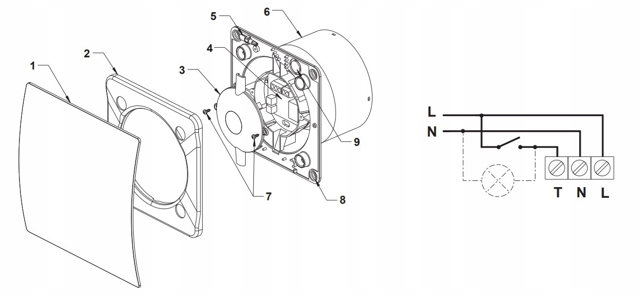 Вентилятори, оснащені функцією затримки вентилятора. Вентилятор запускається і вимкнено - це настінний перемикач, який є частиною електричної установки будівлі. Після вимкнення вентилятора за допомогою стінового вимикача він вимикається лише після встановленого часу на потенціометрі системи управління вентилятором. Затримка виключення регулюється плавно в діапазоні 3 хв. - 30 хв.