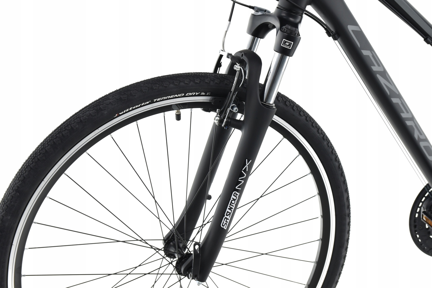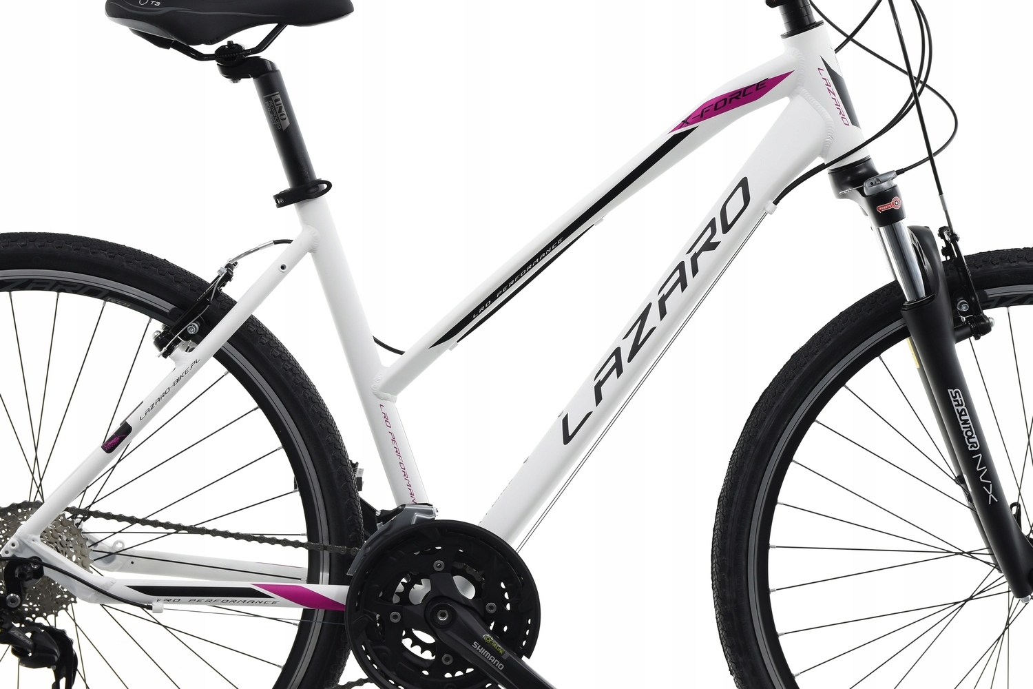 Велосипед Lazaro X-FORCE V3 — це модель кросу, тобто поєднання універсальності та геометрії трекінгового велосипеда та більш агресивного стилю гірських велосипедів. Це буде хорошим вибором для людей, які цінують універсальність і комфортність пересування в міських умовах і поїздках за місто по грунтових дорогах. Легка і міцна гідроформована алюмінієва рама з геометрією, що дозволяє прийняти зручне положення. Великі алюмінієві колеса діаметром 28 дюймів на міцних двокамерних ободах KANDS TECH (з високим конусом 25 мм!) і втулках LRO з картриджними підшипниками. Шини з дорожнім і гравійним протектором добре працюватимуть на асфальтованих поверхнях і бічних дорогах. Рама має різьблення для кріплення аксесуарів, таких як: бризковики, пляшка з водою, стійка. Фірмові компоненти приводу від Shimano забезпечать тривалу та безвідмовну роботу та безпроблемне перемикання передач. Ефективні та фірмові гальма Tekktro дають вам відчуття безпеки та контролю під час подорожі. Якщо ви шукаєте універсальне обладнання з репутацією та, крім того, дуже хорошим співвідношенням ціна-якість, кросовий велосипед Lazaro є одним із варіантів для вас.