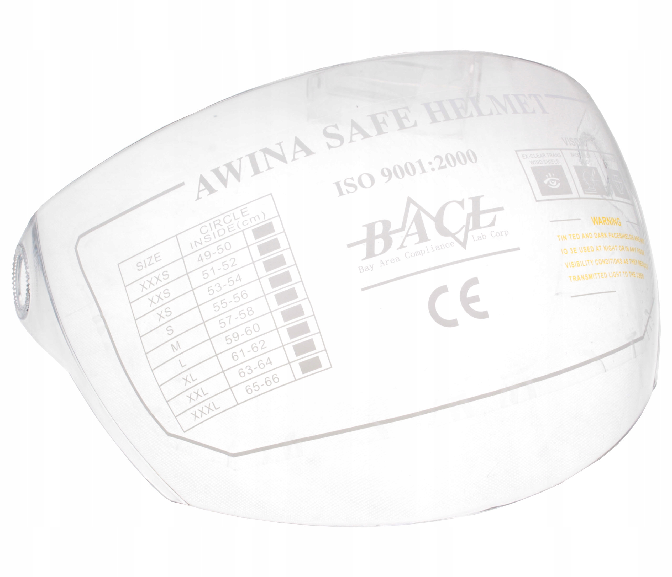 ОПИС: ПРОЗОРИЙ, ЗВИЧАЙНИЙ СКЛЯНИЙ ВИЗОР ДЛЯ ВІДКРИТИХ ШОЛОМІВ AWINA - МОДЕЛЬ JET TN-8661 ТА TN-8616, ПОВЕРХНЯ СКЛА НЕ ПОДРЯПАНА , ЗАБЕЗПЕЧУЄ ШИРОКЕ ПОЛЕ ОГЛЯДУ.