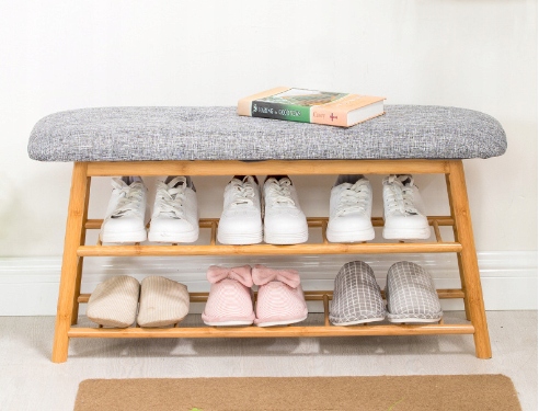ŁAWKA REGAŁ NA BUTY PÓŁKA SZAFKA BAMBUSOWA Z SIEDZISKIEM