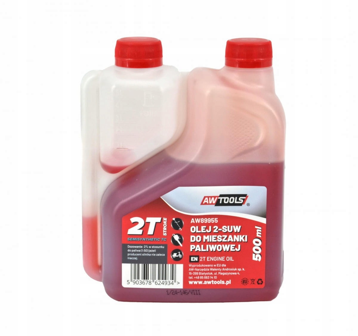 AWTOOLS МАСЛО 2-ТАКТНЕ ДЛЯ ПАЛИВНОЇ СУМІШІ 0,5Л ЧЕРВОНЕ З ДОЗАТОРОМ