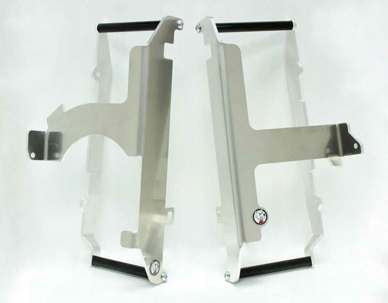 вирізати з товщини алюмінієвої пластини 4 мм , легкі кришки радіатора axp мають три точки кріплення, дві спереду та одну ззаду. Цей дизайн захищає кулера у випадку падіння. Захистіть свій мотоцикл від пошкодження завдяки щита радіатора AXP. Надійне рішення, яке захищає делікатні частини радіатора від ударів, каменів та інших невеликих перешкод, , які можуть виникати під час руху. Виготовлений з високоякісного алюмінію, кришка довговічна і стійка до корозії. Обкладинка постачається з обох боків з усіма необхідними монтажними елементами.