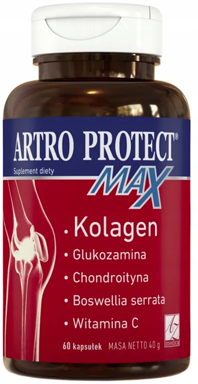 Artro Protect Max Дієтична добавка поруч із традиційними інгредієнтами, такими як глюкозамін, хондроїтин, Boswellia serrata та Vitamin C, містять колаген типу II. Цей тип колагену виникає лише в хрящі, а волокна, які він створює, характеризується високою еластичністю та стійкістю до навантаження. Вітамін С допомагає належному виробництву колагену, щоб забезпечити належне функціонування хряща, кісток та зубів.