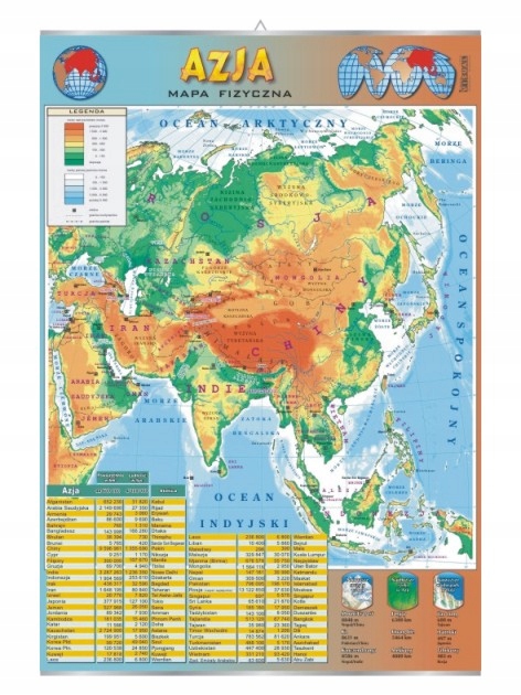 АЗІЯ ФІЗИЧНА КАРТА ДОШКА 70х100 см НАОЧНА