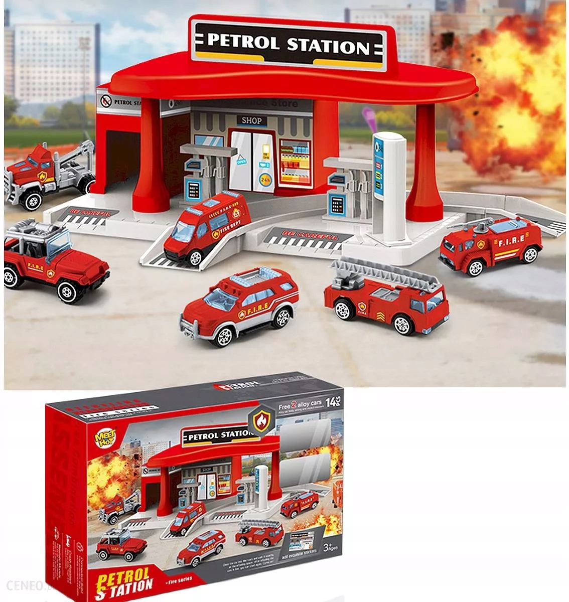 АЗС з пожежними автомобілями. Чудова забава та можливість познайомитися з професією пожежника. Ви можете бути водієм автомобіля, ви можете бути пожежником, ви можете пограти з друзями або наодинці. Будівля АЗС додатково зробить задоволення більш привабливим. Більше ідей для творчих розваг, більше можливостей, станьте пожежним -маленький фанат може грати довгі години!