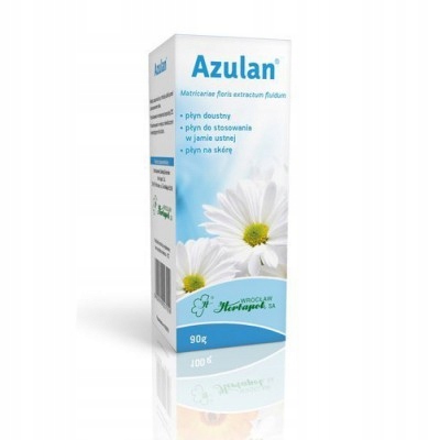 Лікарський засіб Азулан містить рідкий екстракт квіток ромашки (1:2), це рідина для перорального застосування, на шкіру та слизові. мембрани.