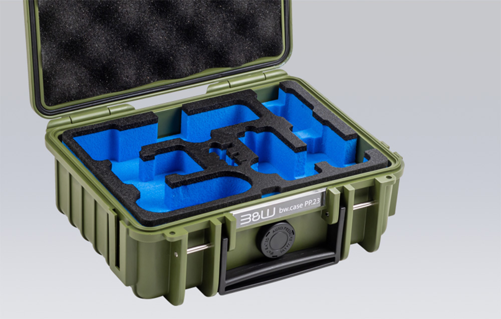 Валізу B&W легко транспортувати завдяки спеціальній ручці. Крім того, два отвори для замка діаметром 4,5 мм підвищують безпеку вашого обладнання, захищаючи його від небажаного доступу. Гнучка пінопластова вставка дозволяє налаштувати конфігурацію зберігання відповідно до ваших потреб.