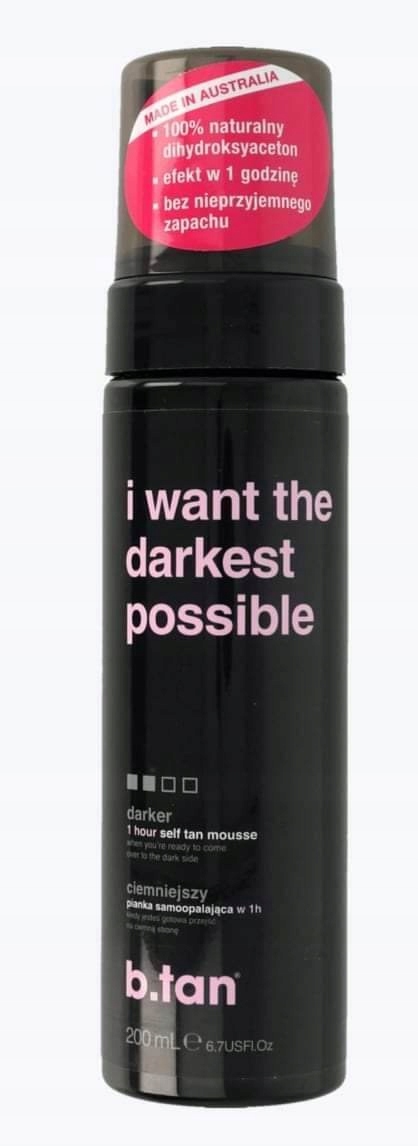 b.tan, I Want The Darkest Possible, більш темна піна для автозасмаги за 1 годину. Назва говорить майже про все. Використовуйте цей продукт і миттєво отримайте чудову засмагу. Просто.