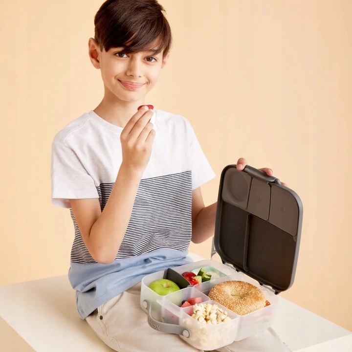 ⏩У сірій палітрі представлений практичний ланчбокс зі зручною ручкою . Усередині є як менші, так і більші відділення, які дозволять вам упакувати улюблені страви та закуски дитини для школи чи подорожі.