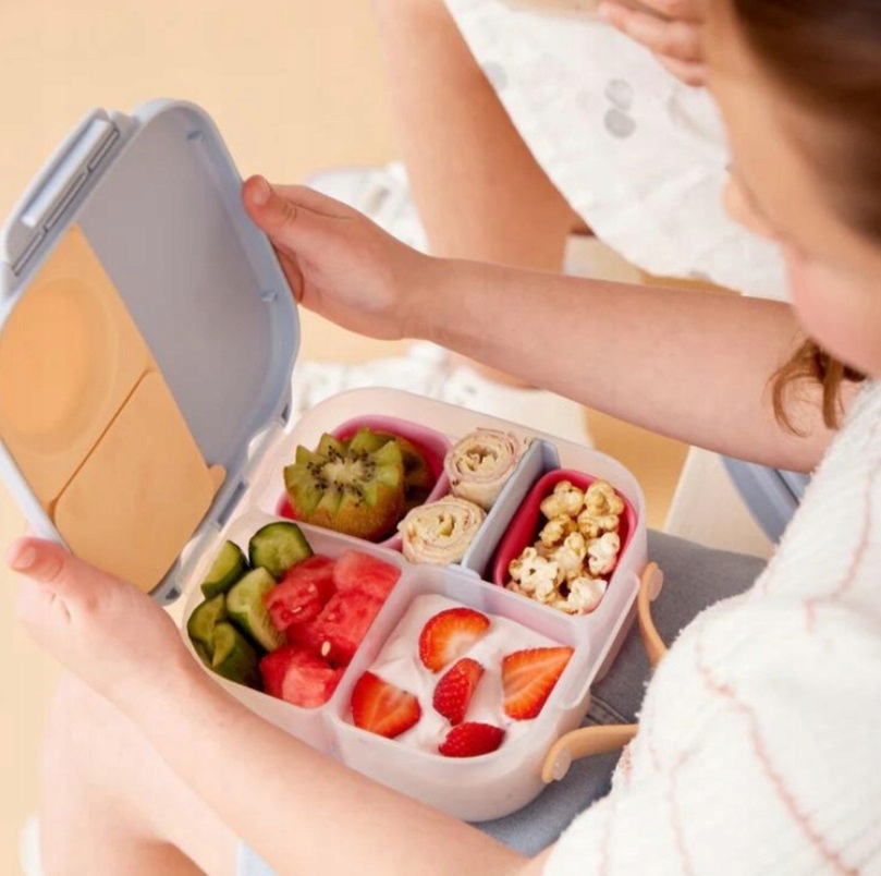 Дитячий міні-ланчбокс b.box має два щільних відділення, в тому числі одне гнучке, призначене для цілих фруктів.