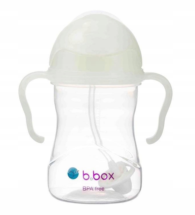 Інноваційна пляшка-непроливайка b.box із обважненою трубочкою, яка «слідує» за рідиною. Тепер у новій захоплюючій версії «Світіння в темряві», тобто пляшка bbox, яка світиться в темряві. Місткість і технічні рішення роблять її дуже практичною першою чашкою для дитини. Завдяки кришці, що світиться, її легко знайти в темряві.