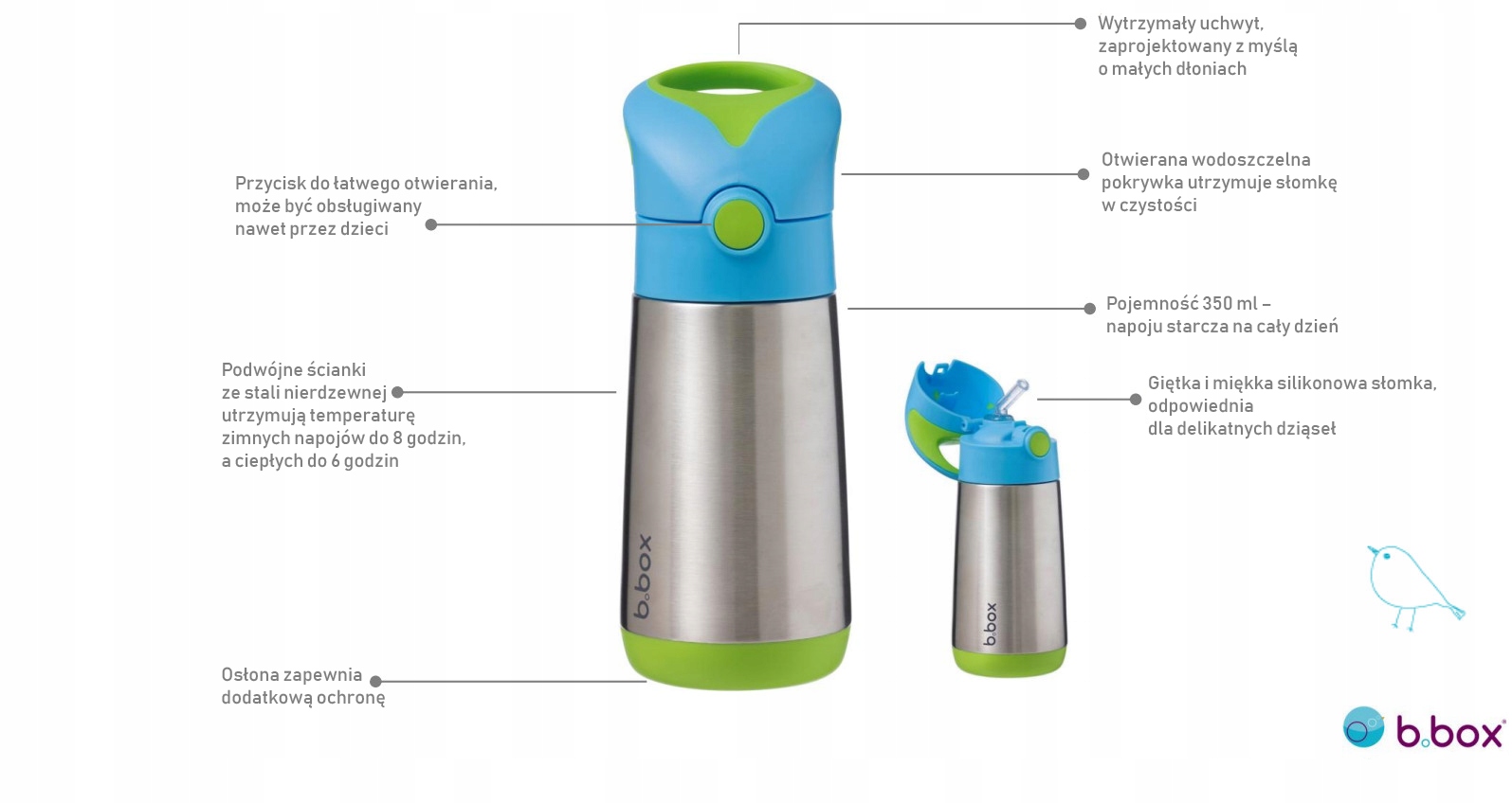 Інноваційна термопляшка з соломинкою від b.box. Завдяки подвійним стінкам з нержавіючої сталі він підтримує температуру до 6 годин.