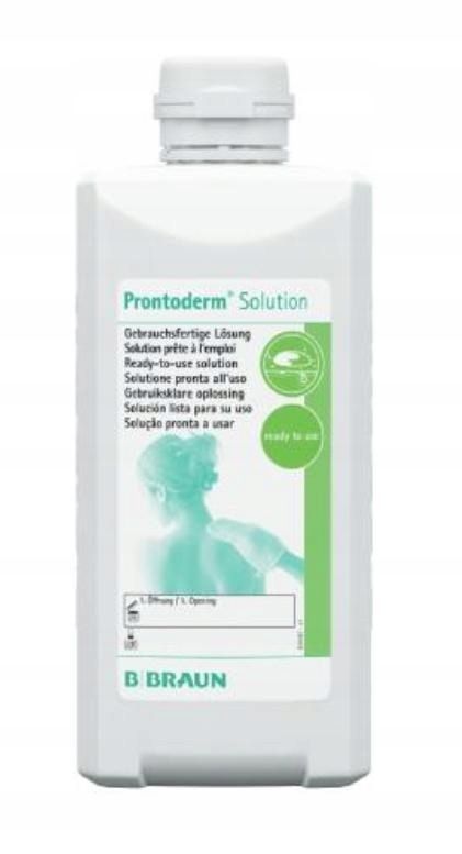 Prontoderm Solution — спеціалізований розчин на основі полігексанідину, призначений для гігієнічного миття рук і антибактеріального миття всього тіла. Він ефективно знищує мультирезистентні штами MDRO, такі як MRSA, ESBL або VRE, а його бар’єрний ефект запобігає повторній колонізації бактерій протягом 24 годин. Продукт безбарвний, готовий до використання та має дуже хорошу переносимість шкірою та тканинами. Не сушить шкіру, не подразнює і може використовуватися без вікових обмежень. Незмивна формула дозволяє мити лежачих пацієнтів без полоскання. Розчин дійсний протягом 8 тижнів після відкриття.