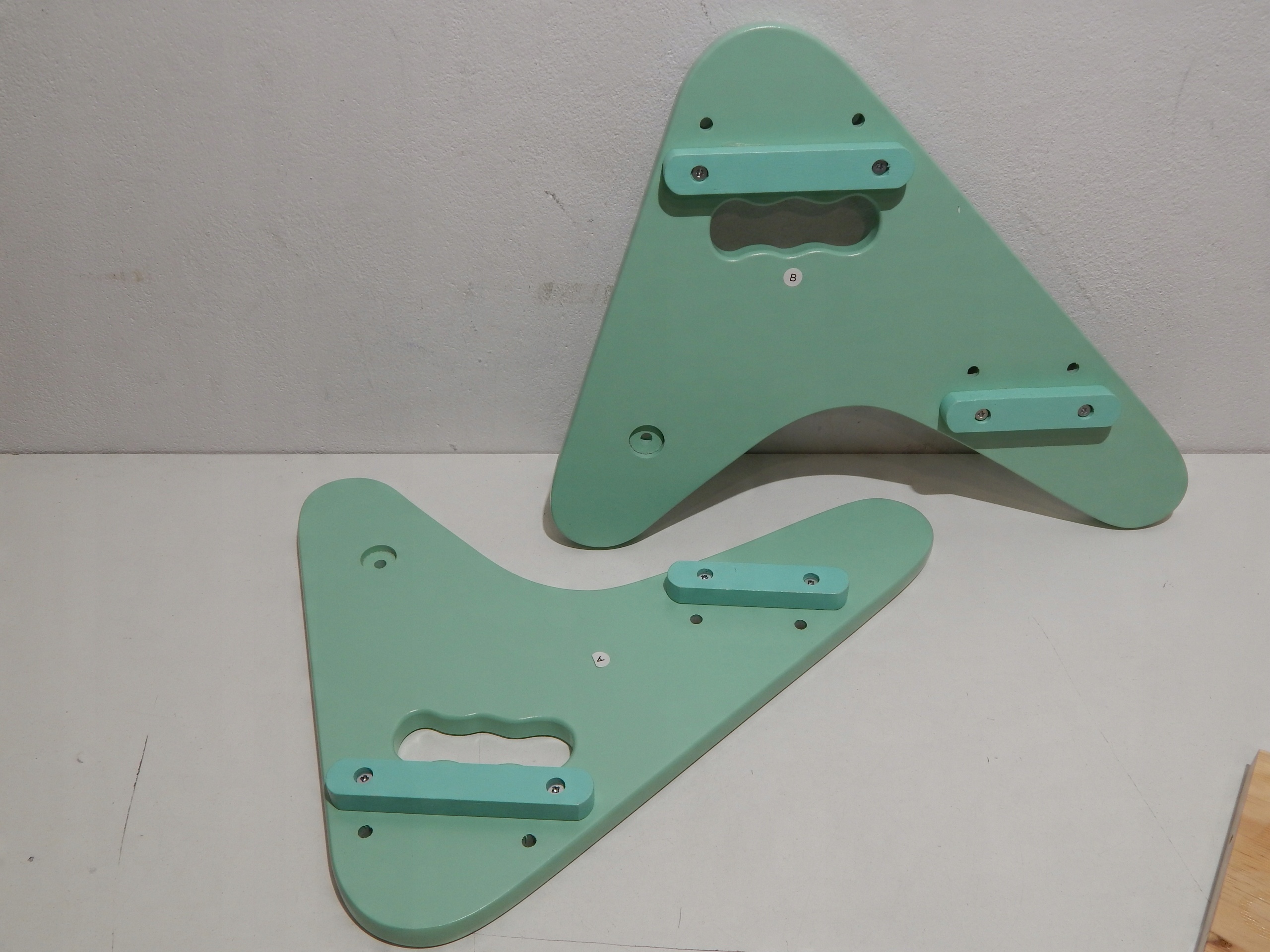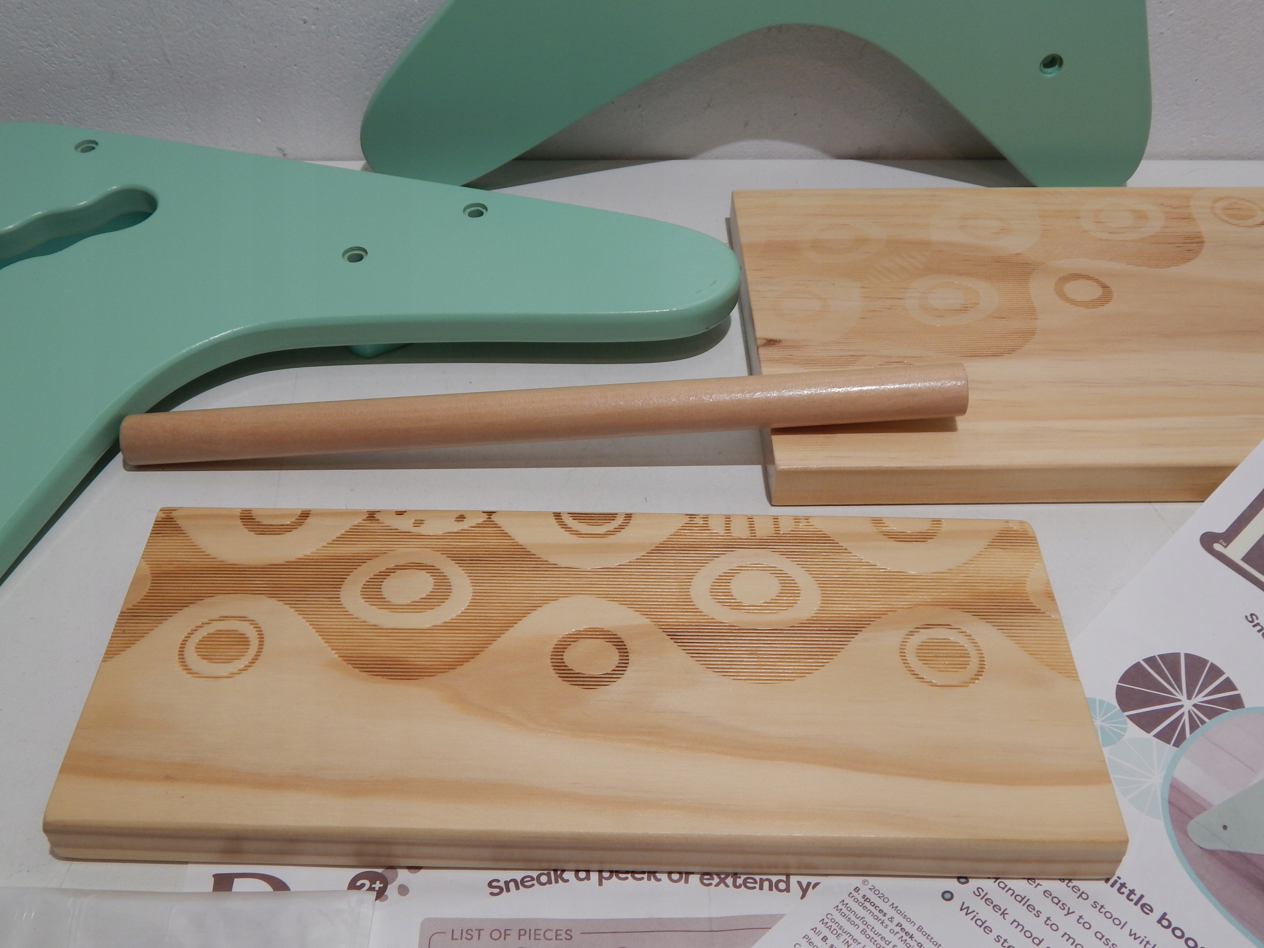 - Дитячий табурет 2-х сходовий з натурального дерева. Для використання в дитячій кімнаті, кухні або ванній кімнаті. У стильних м'ятних кольорах з візерунками на сходинках і борозенках
