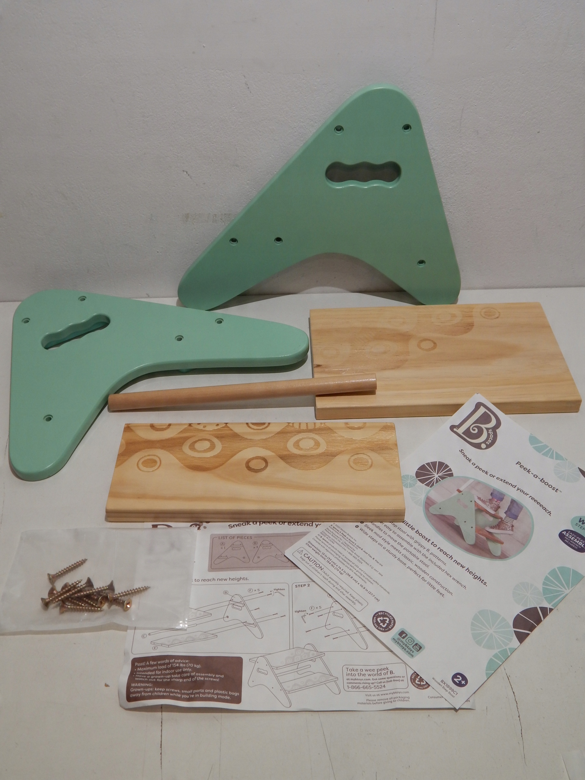 Б. spaces Стійка дитяча дерев'яна підніжка - табурет, табурет 2 сходинки - м'ятний колір дитячі меблі, для ванної, кухні, дитячої кімнати від 2 років