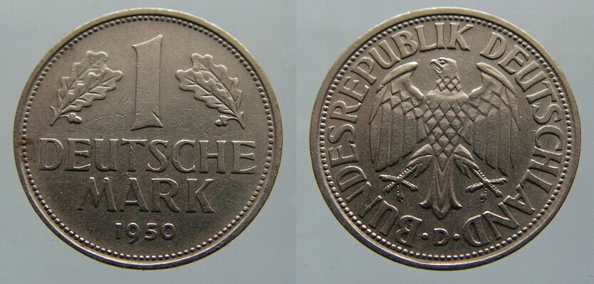 B283. НІМЕЧЧИНА - ФРН, 1 МАРКА, 1950 D, ST.1