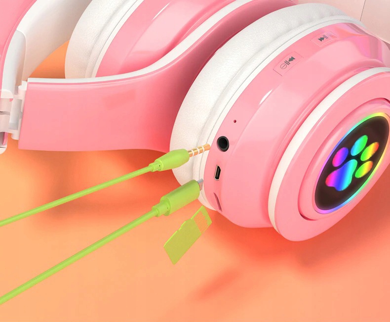 Навушники оснащені стильним RGB-підсвічуванням. Лапи з боків і вуха навушників повільно змінюють відображуваний колір.