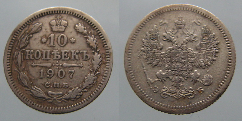 B457. РОСІЯ, 10 КОПІЙК 1907
