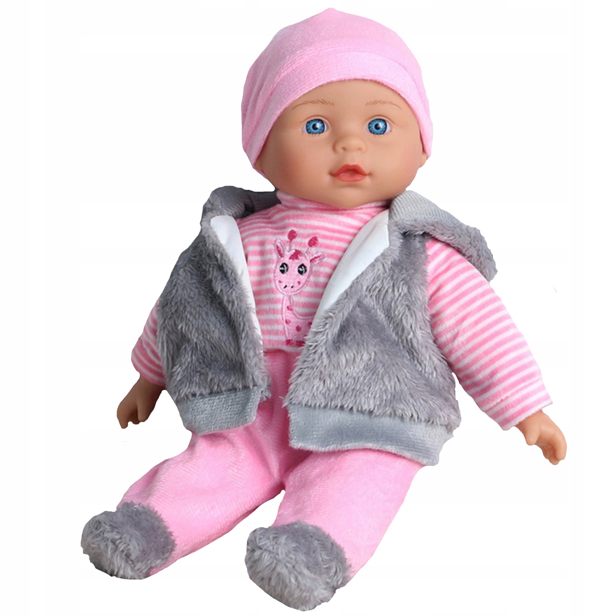 Лялька виглядає як милий блакитноокий хлопчик. Має гумову голову, ручки та ніжки, а живіт тканинний. Одягнений у сіру пухнасту жилетку, рожеві шорти, блузку з жирафом у рожево-білу смужку. Рожевий плюшевий капелюх завершує образ. Милий малюк, який принесе багато радості маленькому вихователю і стане улюбленим товаришем по іграх. Свою нову подругу вона може возити в колясці і класти спати в ліжечко або колиску (не входить в комплект).Лялька виготовлена з якісних матеріалів, дбайливо і акуратно.