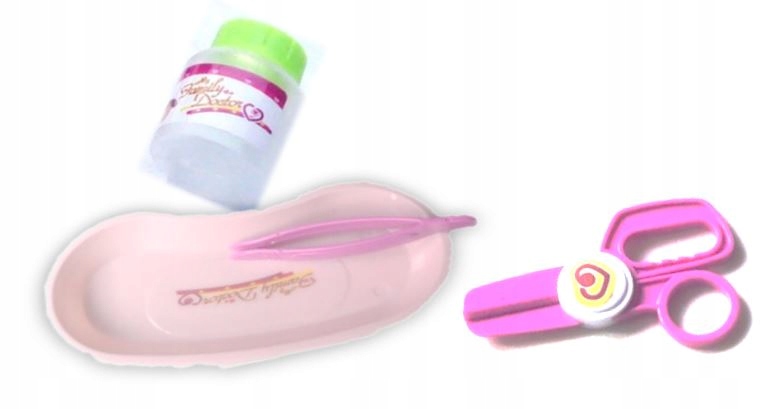 - лялька - "когось треба лікувати" - пластик (живіт з м'якої пластмаси), руки і ноги можна згинати, сидить, голову можна повертати вправо/вліво, відкриває (вертикально) і закриває (горизонтально) очі. , одяг можна зняти та випрати