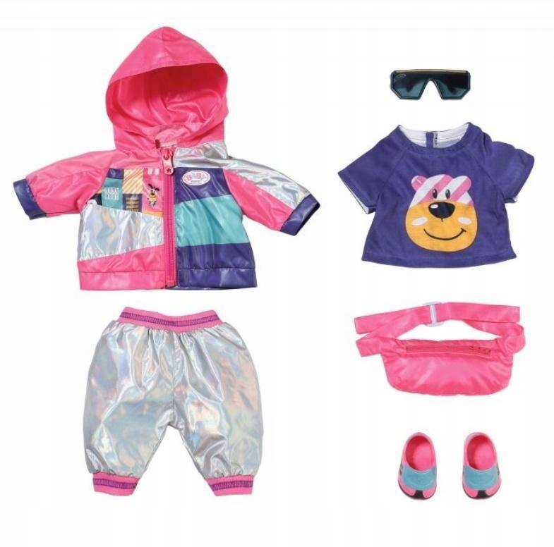 Ого! Це стартовий сигнал для велогонки Tour de BABY born. Маленький спортсмен привертає увагу стильним купальником. На куртці з капюшоном з'являються модні геометричні фігури. Подібні мотиви прикрашають її сонцезахисні окуляри. Піджак ідеально поєднується з темною футболкою з портретом ведмедика Бруно. Понад спортивним взуттям переливаються штани - переливаються на сонці, як медаль, здобута на змаганнях. У рожевому поясному пакетику BABY born вона сховала документ про участь у забігу та снек із вівсяних пластівців – джерела здорової енергії. Якісний одяг для оригінальних ляльок BABY born. Для більш цікавого, різноманітного та нескінченного задоволення. Простий крій робить одягання та роздягання дитячою грою. Велосипедний набір BABY born Deluxe 43 см з курткою, футболкою, штанами, взуттям, сумкою на поясі та сонцезахисними окулярами.