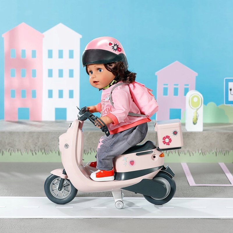 Сяюча задня частина скутера додає йому ще більше автентичності, роблячи кожну поїздку захоплюючою та емоційною. Крім того, Baby Born може зручно сидіти на сидінні та тримати руки на кермі, що вносить додатковий елемент реалізму та безпеки під час водіння.