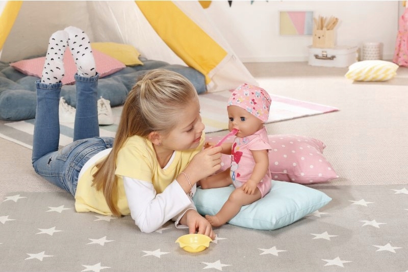 - Лялька їсть - ви можете годувати її спеціальним кормом Baby born.