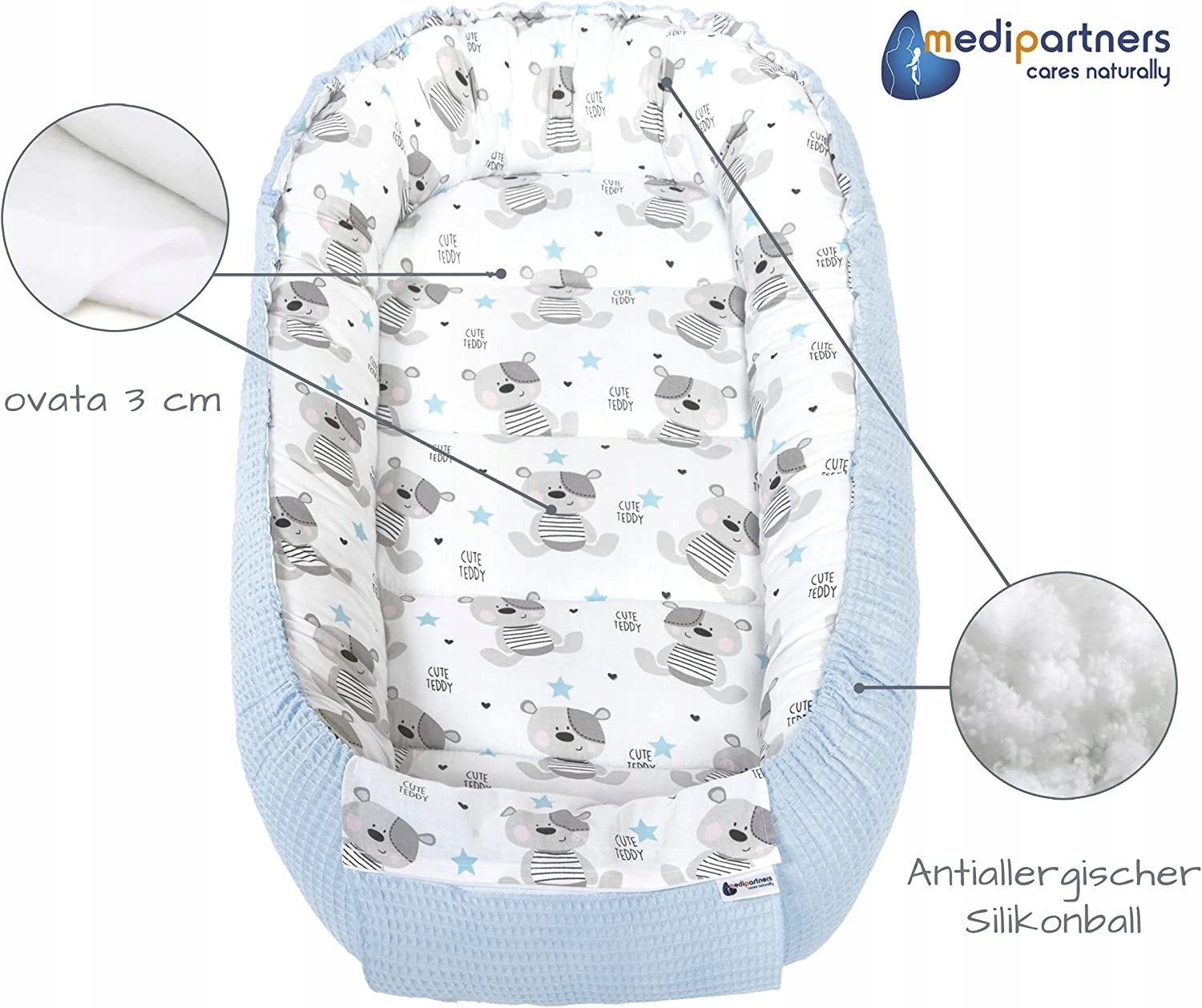 Оплачивая «Baby Cocoon Medi Partners 1 El. синий в плюшевом мишках», вы можете быть уверены, что данное изделие из каталога «Коконы и гнезда» будет доставлено из Польши и проверено на целостность. В цене товара, указанной на сайте, учтена доставка из Польши. Внимание!!! Товары для Евросоюза, согласно законодательству стран Евросоюза, могут отличаться упаковкой или наполнением.