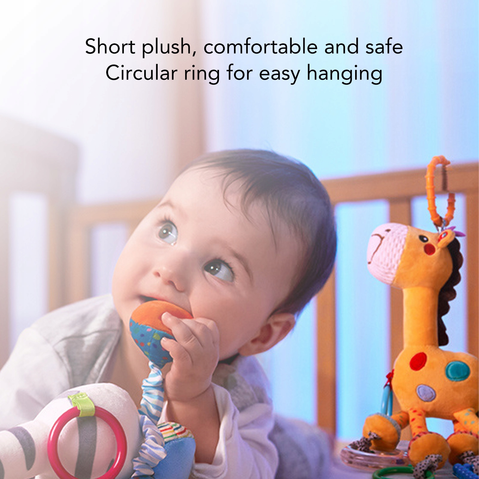 1. Основні особливості: зручна іграшка для дитини, підвішена в інвалідних візках або сльозах, виховуючи здібності зору, барвисті та сухі здібності. Тварина з коробки: плюшева іграшка має мурафу жирафа, це маа і чарівна, в яскравих кольорах, вона може краще привернути увагу дитини. М'який матеріал: Виготовлений з короткого плюшевого та пластичного, екологічно чистого та здорового, не завдає шкоди немовлятам і може бути використаний безпечно. Легка підвіска: Цей плюшевий кулон має кругове кільце, яке стакулять підвіску, а після тремтіння він видає делікатний звук для залучення дитини. Багато додатків: Ця плюшева іграшка для дитини підходить як подарунок для дитини, для взаємодії з батьком та дитиною, щоб покращити інтелект дітей тощо