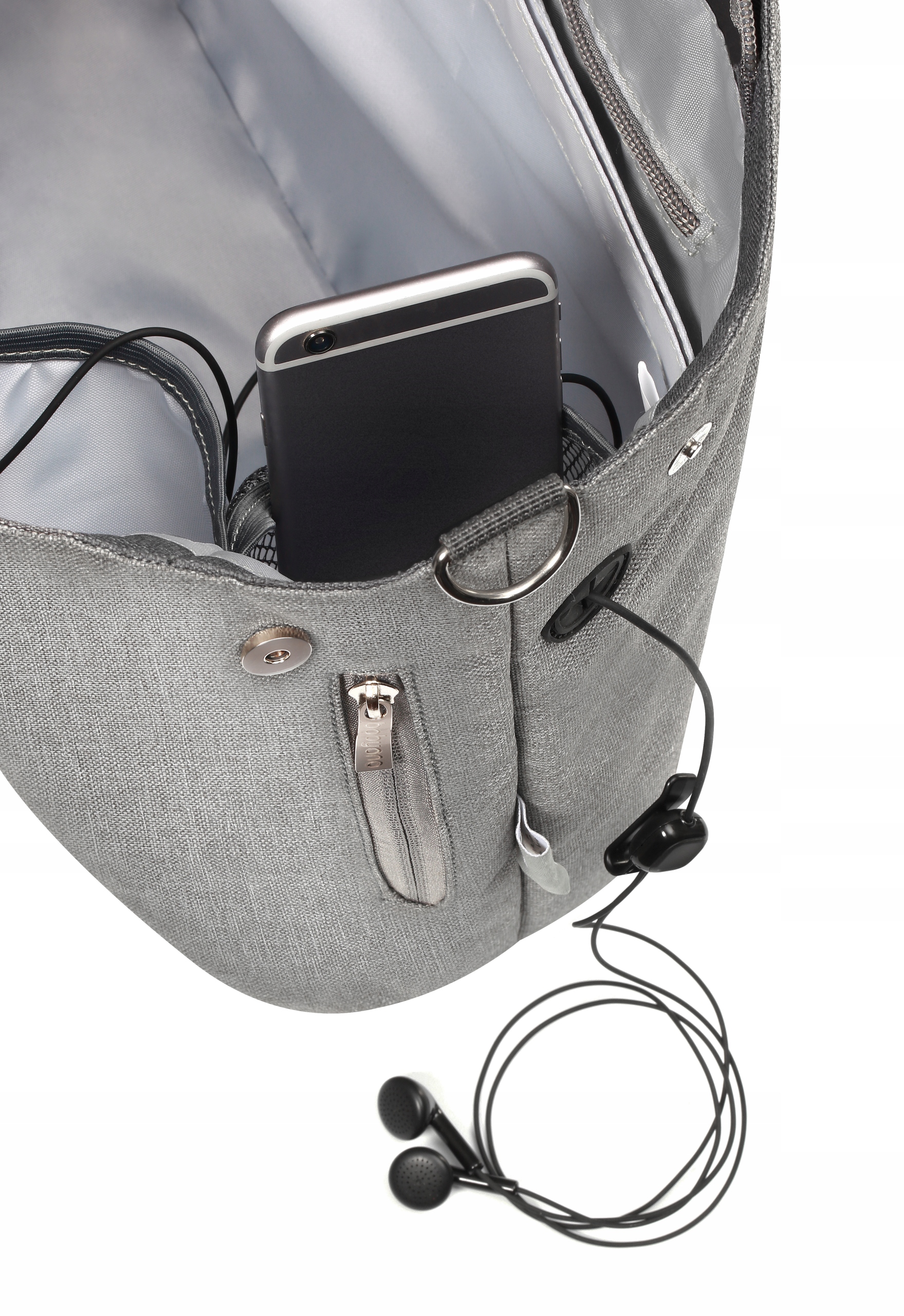 тонкі, металеві оздоблення дають цей мішок міського стилю.