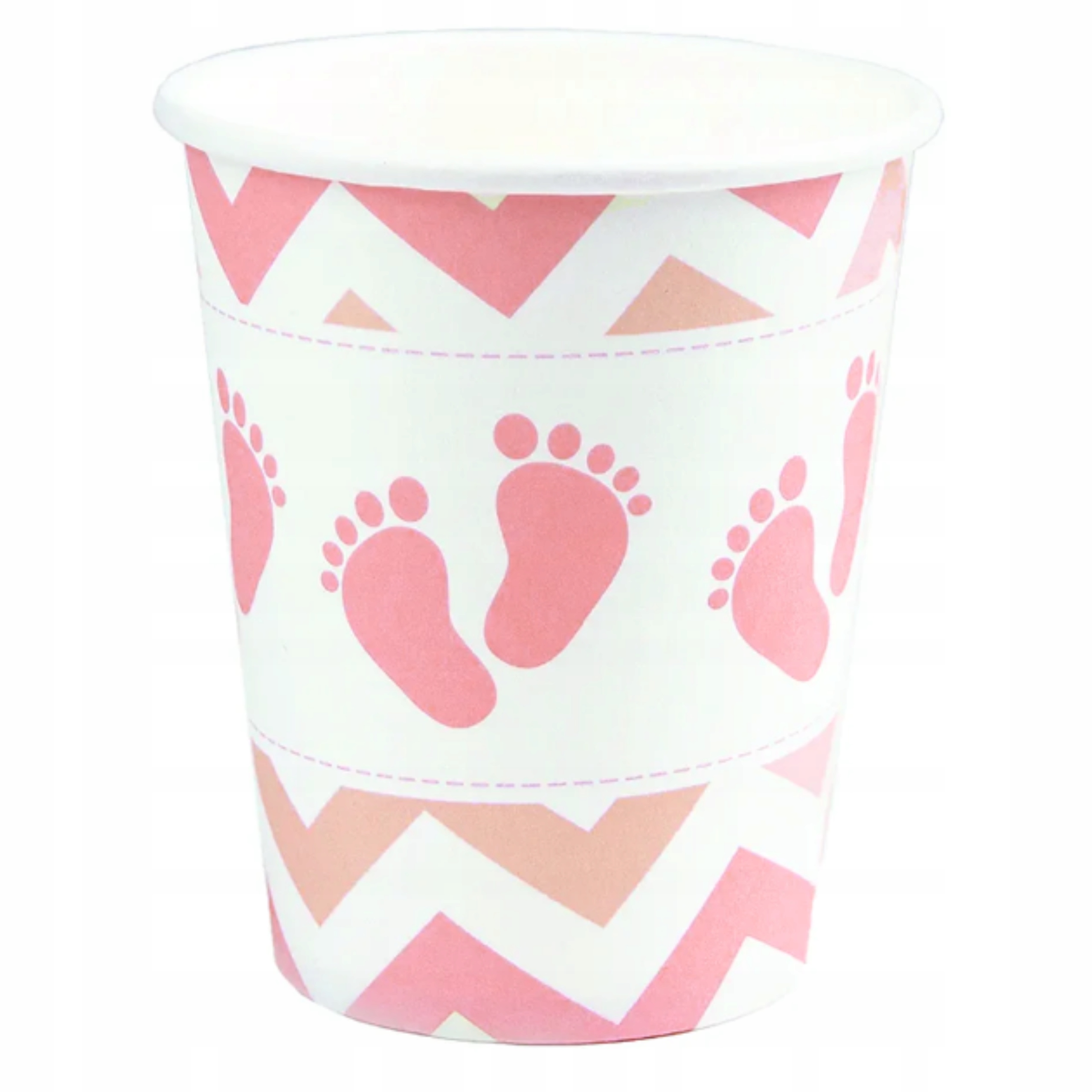 Zestaw Baby Shower "Stópki" różowe SERWETKI SŁOMKI TALERZYKI KUBECZKI