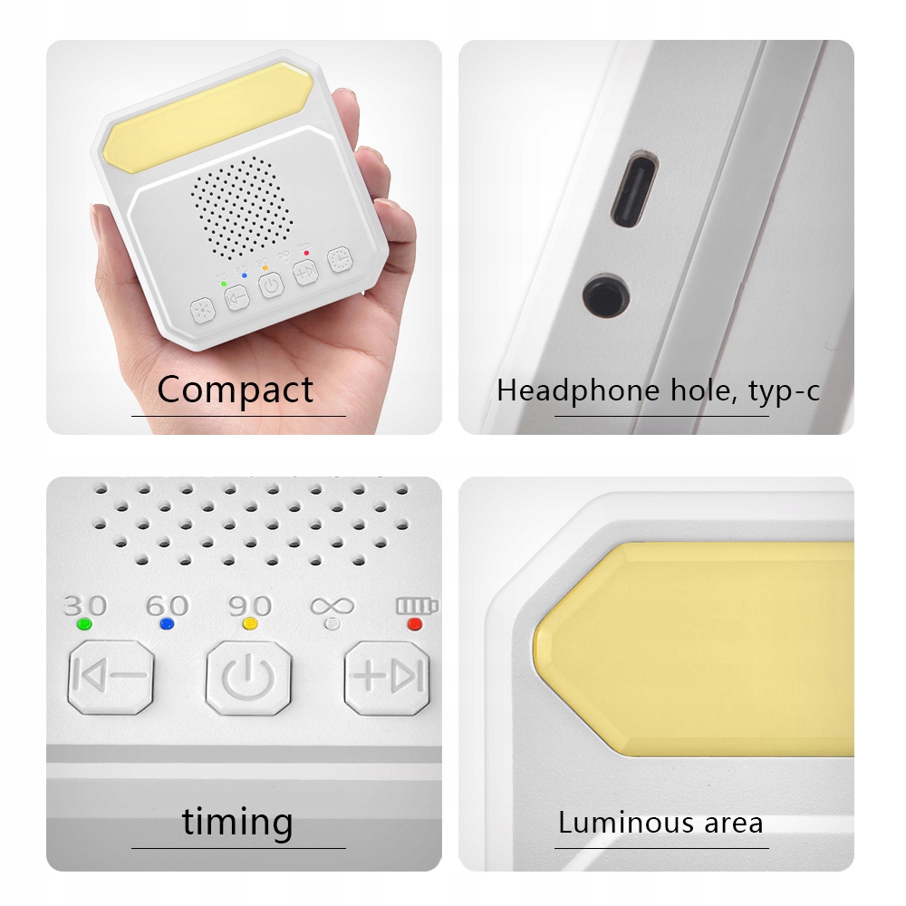 - 【Портативний звуковий машина сну】 Компактна і легка спальна машина можна розмістити на ліжко -столі або офісному столі. Ви також можете взяти його з собою, коли ви їдете на кемпінг, подорожі тощо. 3,5 мм підйомник троянди пропонує для вас більш особистий простір. 4 М'який і неадаплінг, не дратує дітей або не заражає сон, хорошого помічника, щоб харчуватися нішею. Насолоджуйтесь тихою ніччю та сном натрію. 4 Портативний та легкий, зручний для домашнього використання та подорожей.