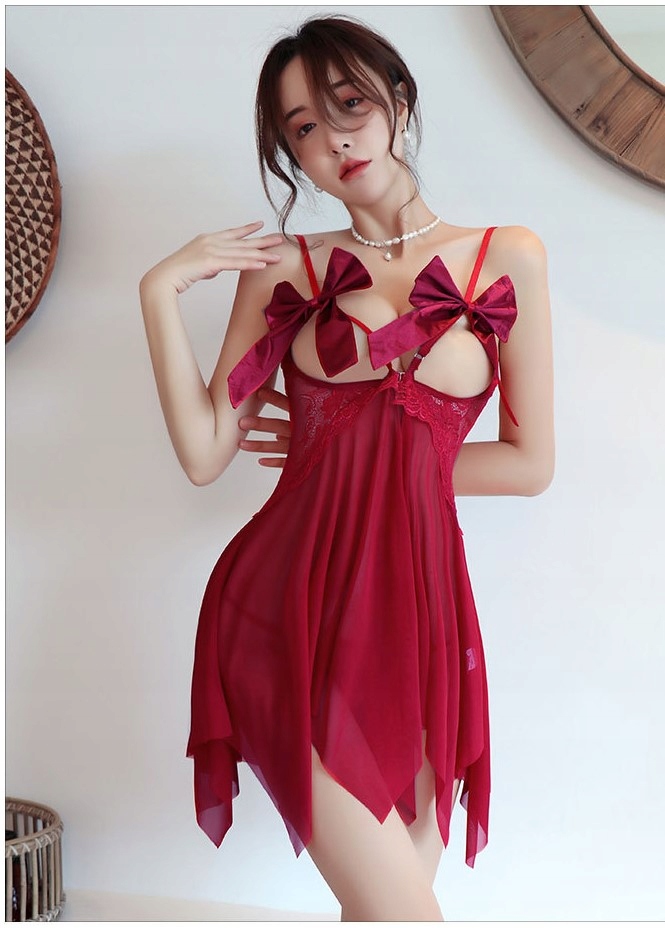 Відкрийте свою чуттєвість за допомогою нашої нової колекції сексуальної нижньої білизни. Цей елегантний червоний трикотажний майданчик, виготовлений з ніжного, дихаючого матеріалу, прикрашений атласними луками, які додають чарівності та витонченості. Ідеально підходить для романтичних вечорів.