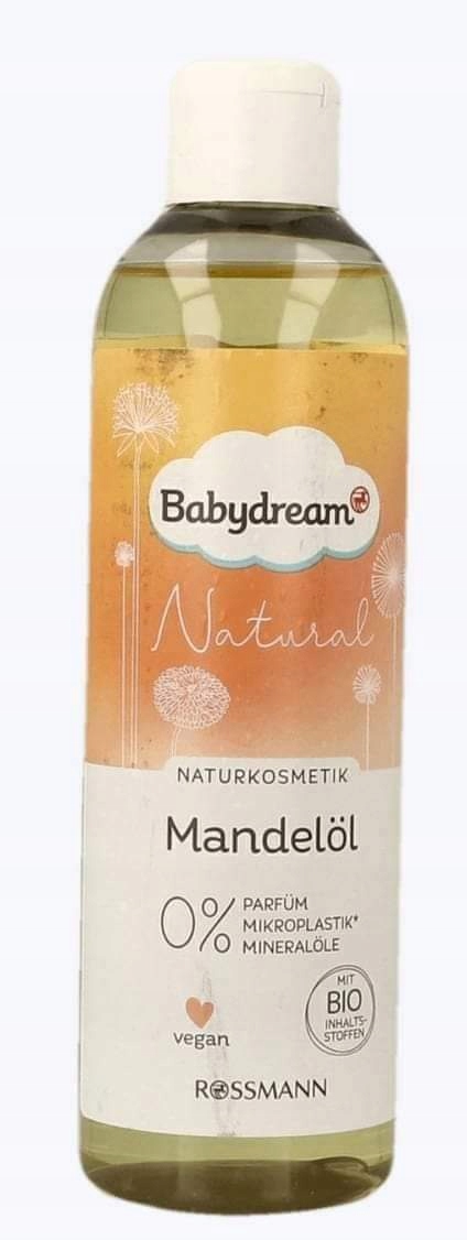 Натуральна мигдальна олія Babydream на 95% складається з мигдальної олії. Доглядає за ніжною шкірою малюка і очищає її в області під підгузком. Також ідеально підходить для використання як доповнення до купання дитини або масажу.