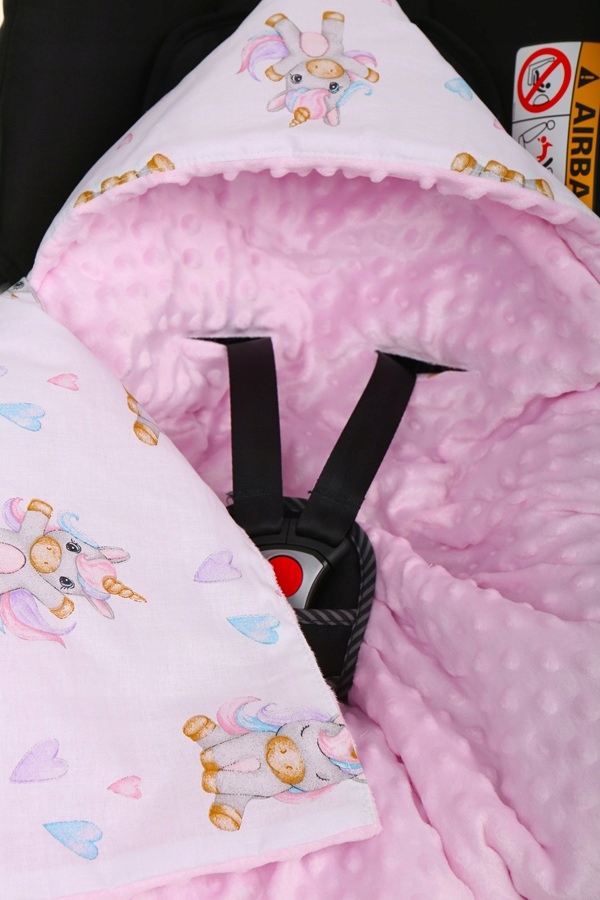 Виготовлений з м'якої обгортки minky, ізоляції та 100% бавовни забезпечує повний комфорт нашій дитині під час водіння автомобіля. Ковдра наповнена високоволокнистим утеплювачем. Вашій дитині більше не доведеться лежати в незручному комбінезоні під час подорожі. Наша ковдра загортання забезпечить вам комфорт відпочинку, як подрімати в ліжку під м’якою ковдрою.