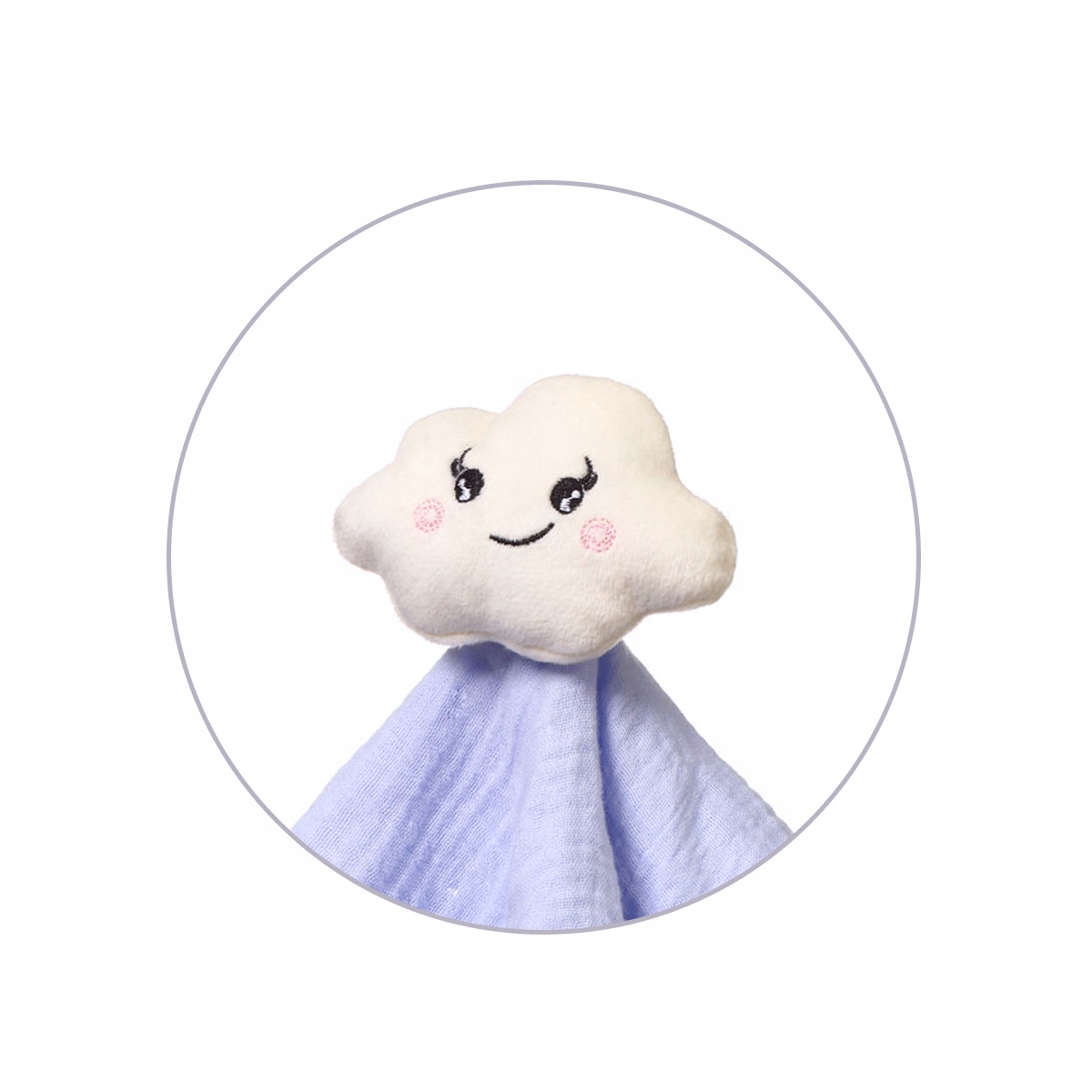 Blinky Cloud — це виріб «два в одному»: ковдра та м’яка іграшка у формі хмаринки. Він виготовлений із мусліну — одного з найделікатніших матеріалів. . Це робить його придатним для новонароджених з перших днів життя. Він має навчальні та сенсорні значення. Вузлики по кутах і бирки сприяють розвитку спритності. Деталі привертають увагу малюка. Муслінова тканина забезпечує оптимальний потік повітря.