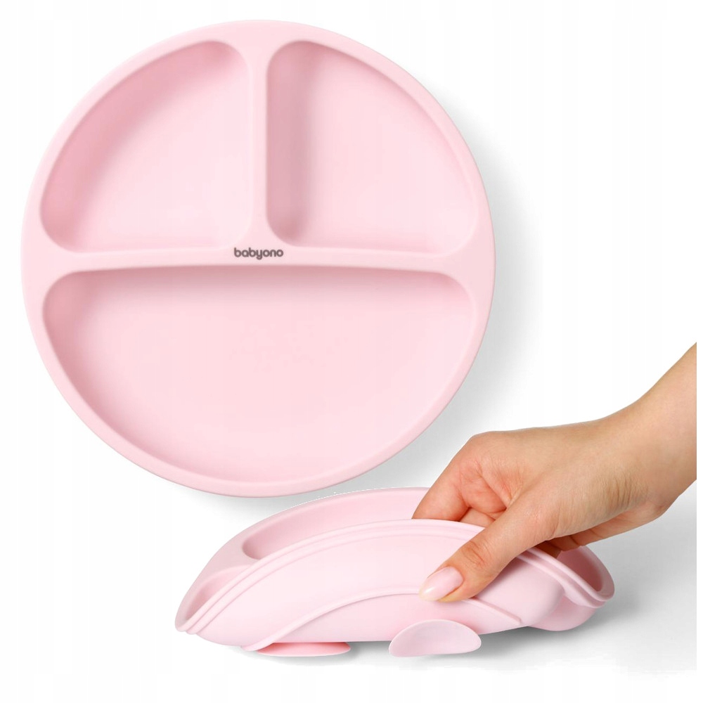 BABYONO SILIKONOWY TALERZYK Z PRZYSSAWKĄ 3 PRZEGRÓDKI RÓŻOWY