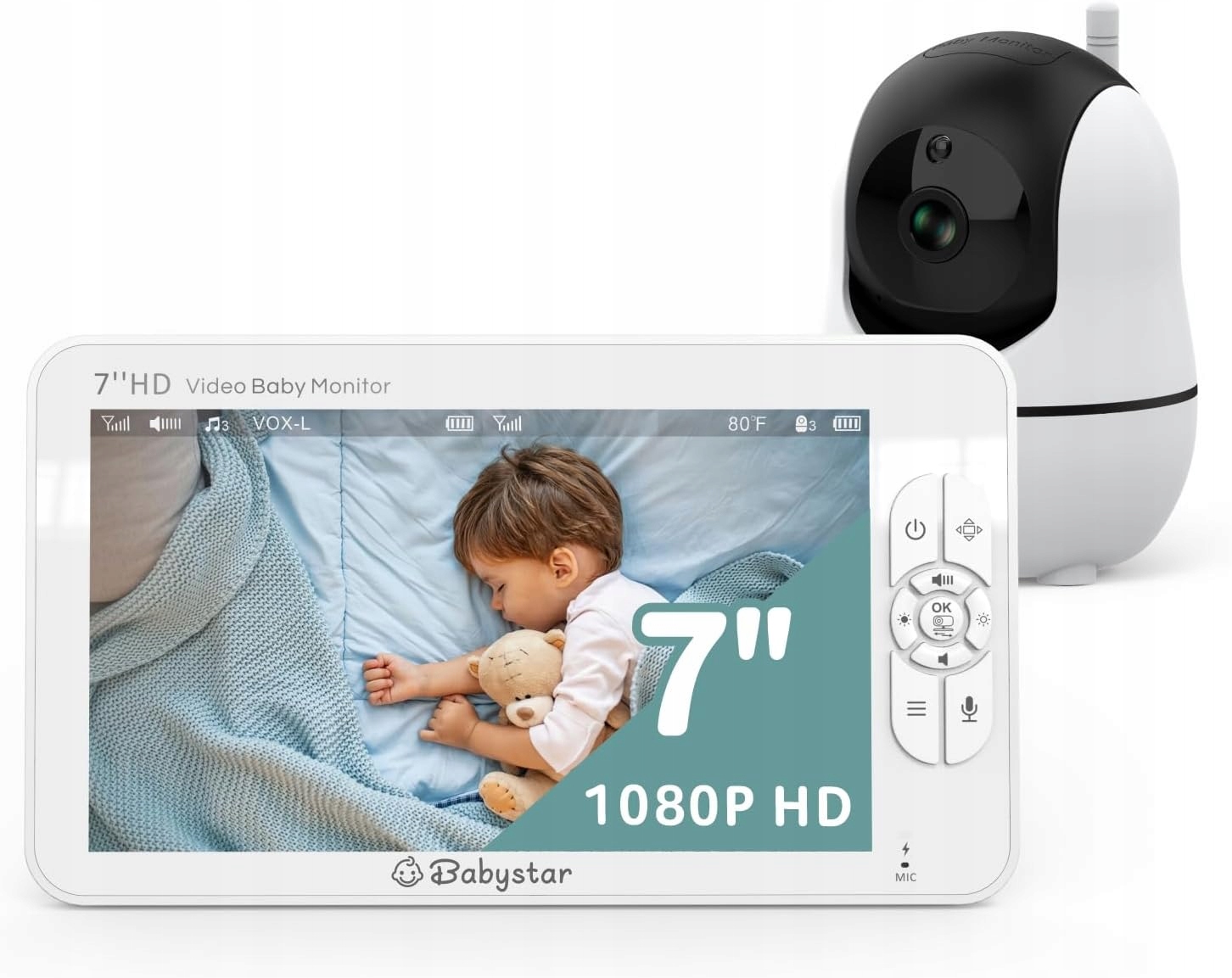 ✅ Електронний монітор Babystar Baby з 1080p HD-камерою, 7-дюймовим екраном, нічним баченням, Vox, двостороннім аудіо