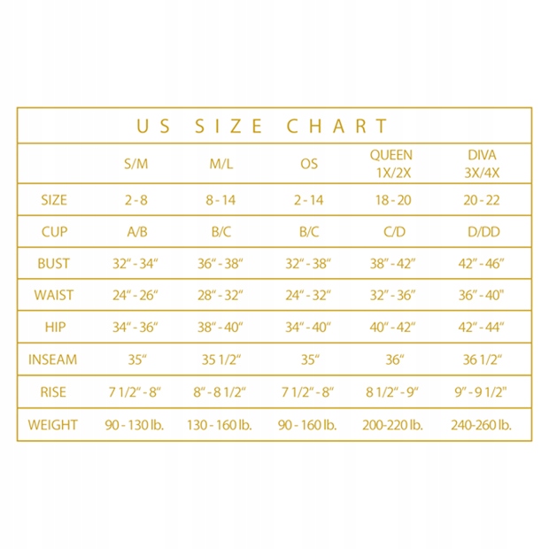 Універсальний розмір S/M/L, One Size, відображається в таблиці розмірів як OS або L/XL, розмір Queen, відображається в таблиці розмірів як Queen.