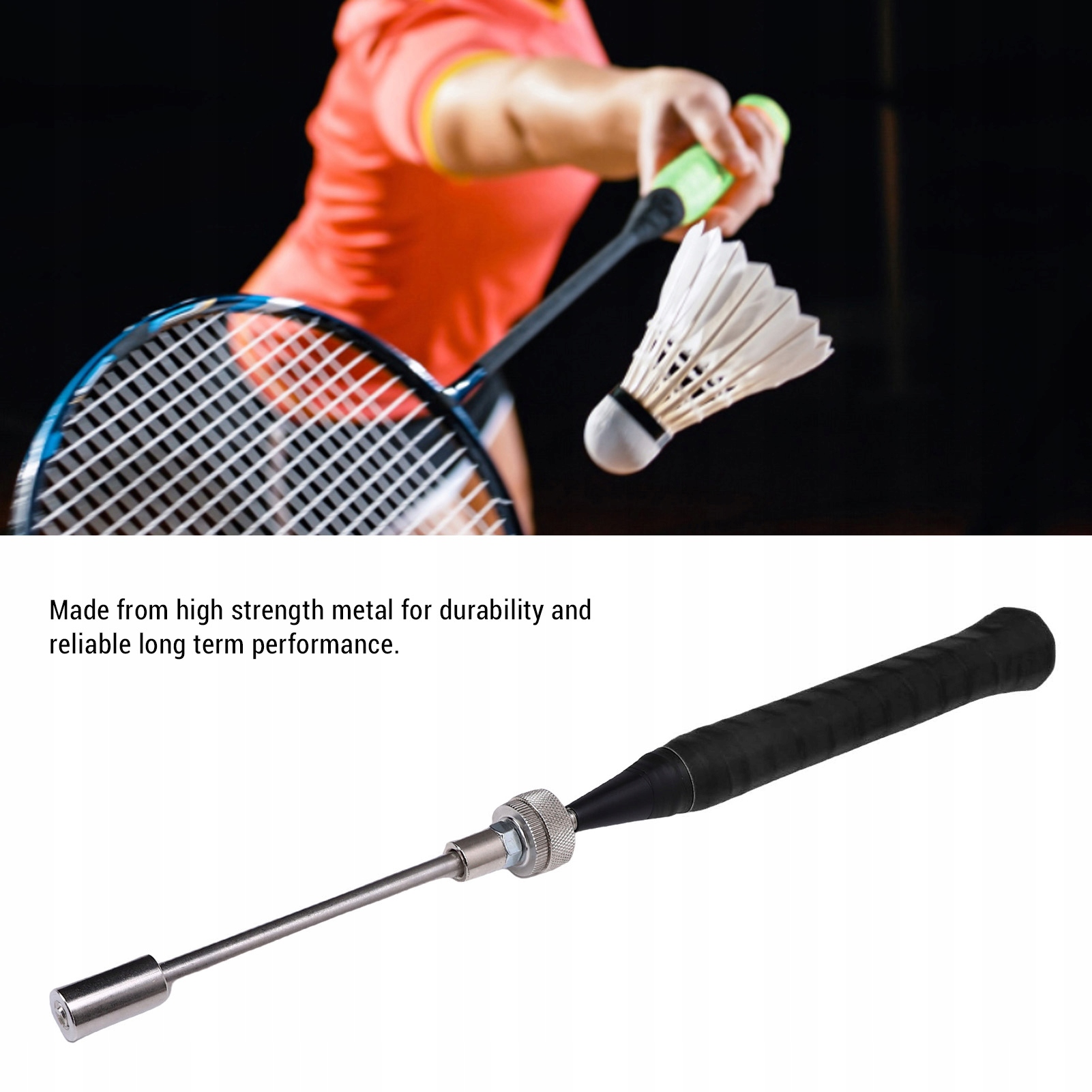 4. Міцна конструкція: Виготовлена з високоміцних металевих матеріалів, тренер з гойдалки ракетки бадмінтон забезпечує міцність та довговічність, підтримуючи стабільні показники для тривалого використання без шкоди для надійності.