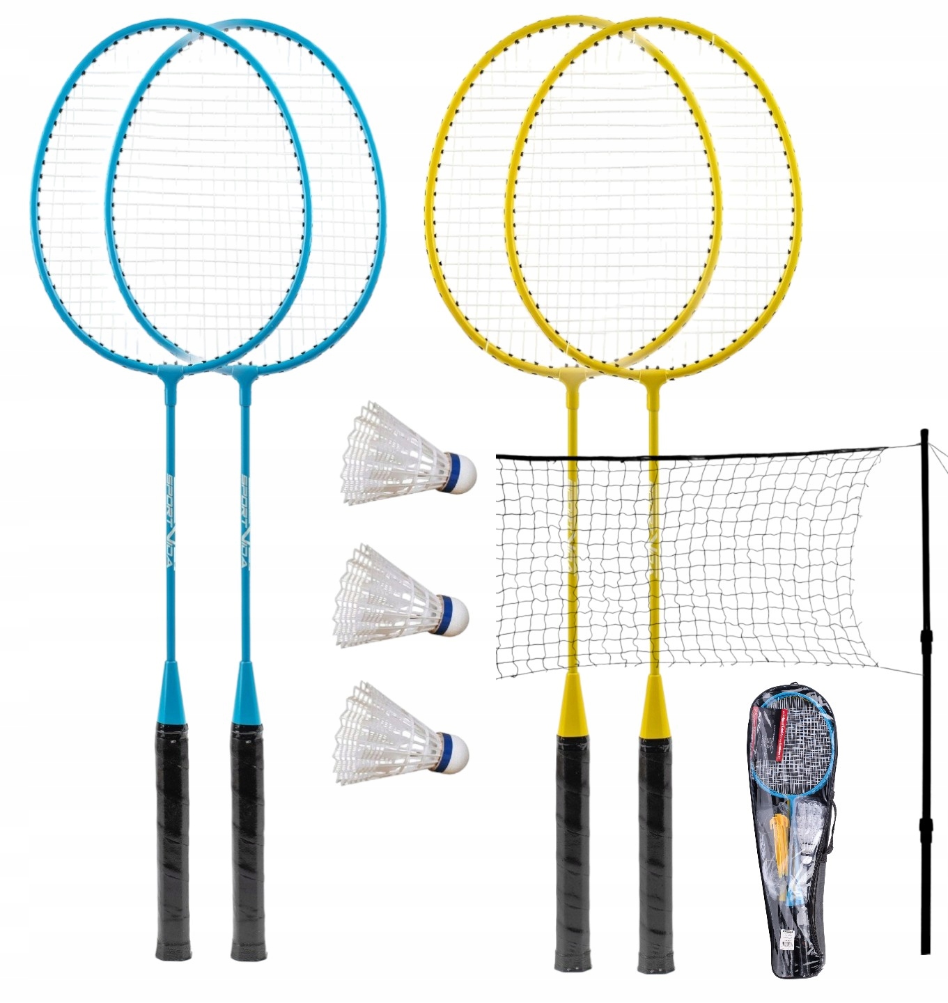Набір Badminton Sportvida: 4 ракети +3 нейлонові жалюзі +сітка +обкладинка