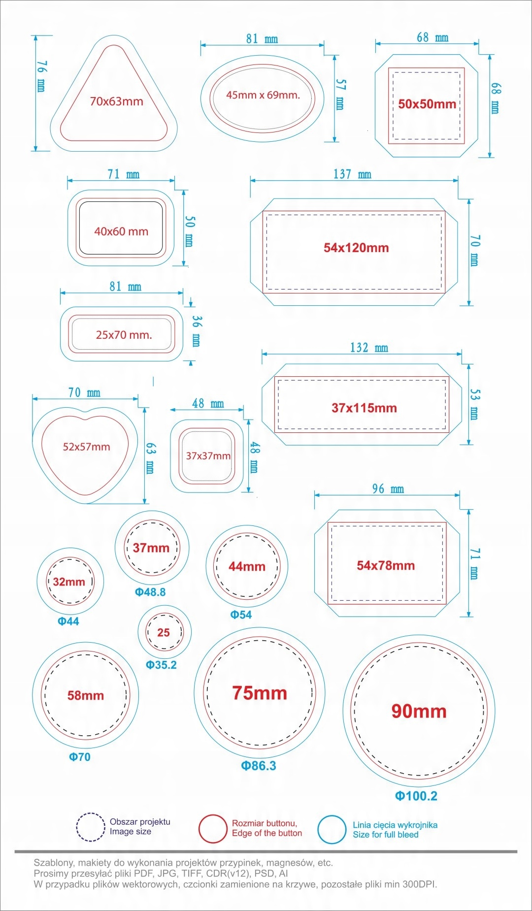 Кольори CMYK, векторні файли - шрифти перетворені на криві, інші файли графіки принаймні 300DPI.