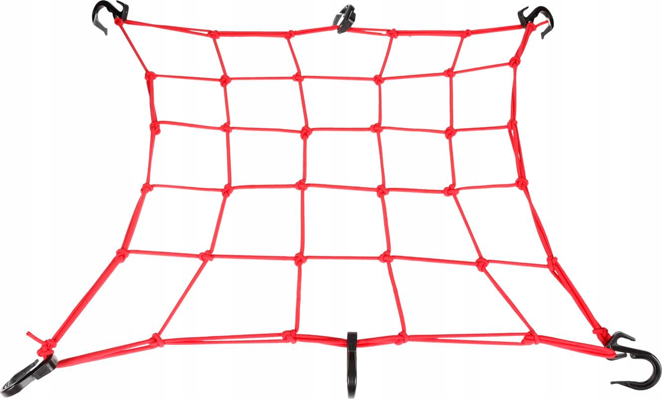 Універсальна мотоциклетна сітка типу "павук"для кріплення різноманітних аксесуарів. Виготовлений з гнучких і міцних гумових шнурів. Має шістнадцять пластикових гачків. Гаки забезпечують надійне та стабільне кріплення. Ідеально підходить для перевезення запасного шолома для пасажира або багажу на задній частині мотоцикла чи квадроцикла.