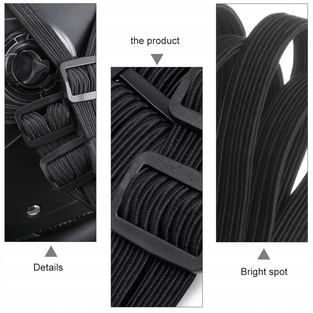 Цей елемент являє собою еластичну мотузку, яка є високоміцним інженерним пластиком, каркас якого нелегко подряпати, і має можливість масштабування. Застосовне середовище: надворі, кемпінг, їзда. Пристебніться або їздіть на мотоциклі під час тривалої подорожі, щоб запобігти розповзанню речей.