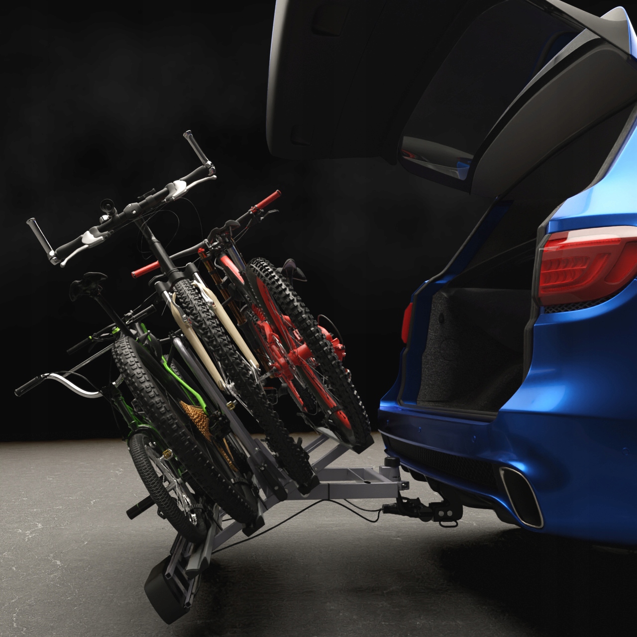 - Функція нахилу платформи вниз з велосипедами дозволяє відкривати багажник автомобіля без необхідності знімати велосипеди в більшості автомобілів